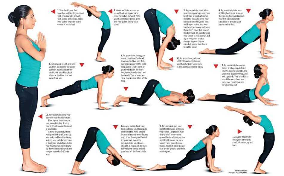 Как правильно делать гимнастику, упражнения, позы из йоги Приветствие Солнцу: